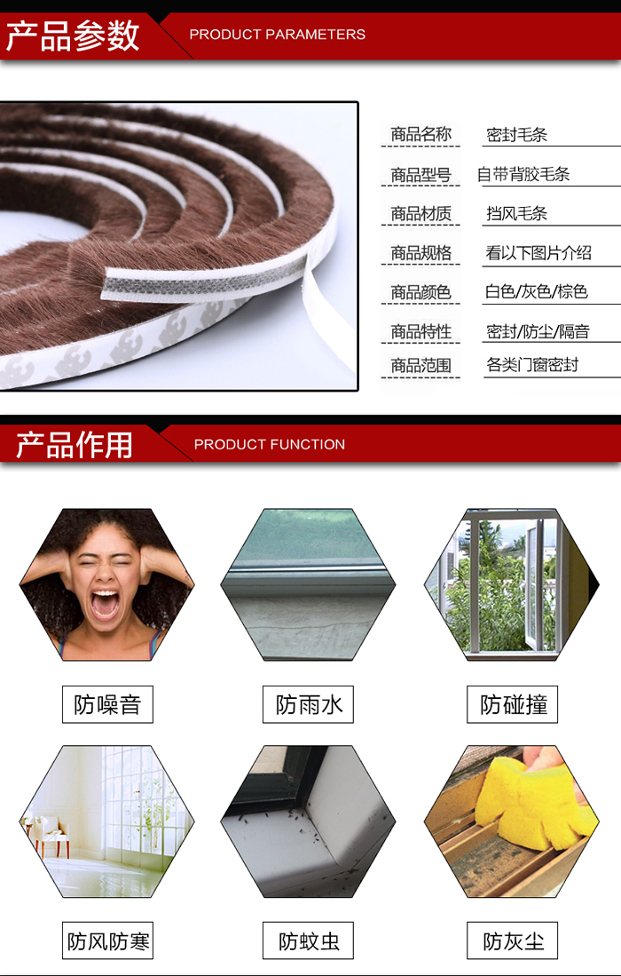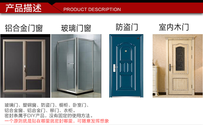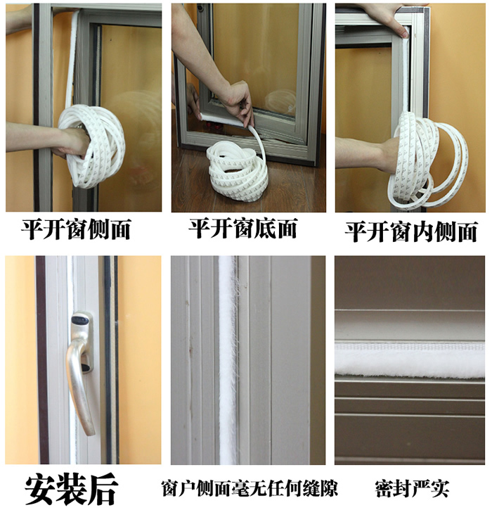 窗戶(hù)推拉窗密封,防盜門(mén),推拉門(mén),衣柜門(mén),鋁合金塑鋼門(mén)窗都會(huì)用到,可以有效地阻止窗戶(hù)等縫隙漏風(fēng),防蚊蟲(chóng),防塵,效果十分顯著。是門(mén)窗不可或缺的配件之一。