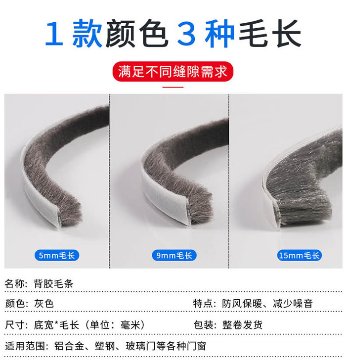 規(guī)格:9mm*15mm,換密封毛條價(jià)格:7元/米;