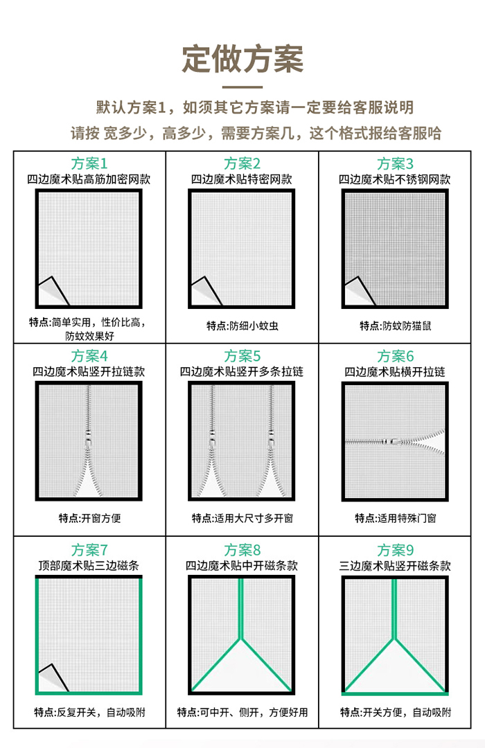 定制魔術貼紗窗按尺寸算,因此定制前需要和客服溝通。