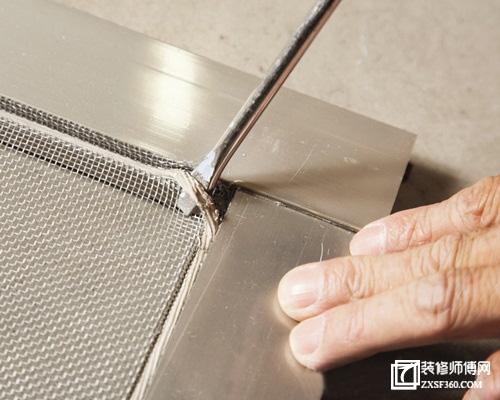 十、用一字改錐將末端壓入固定,然后沿著壓條邊緣,將多余的紗網(wǎng)剪掉就完成了。