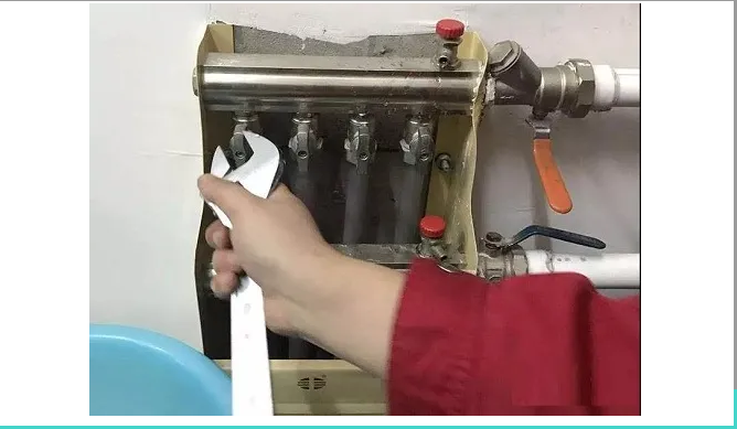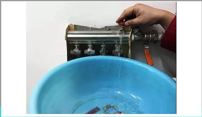 第二步:將地暖管供回水閥門依次關(guān)閉,留下單獨(dú)一根,保持一趟回路暢通(上下供回水為一路)